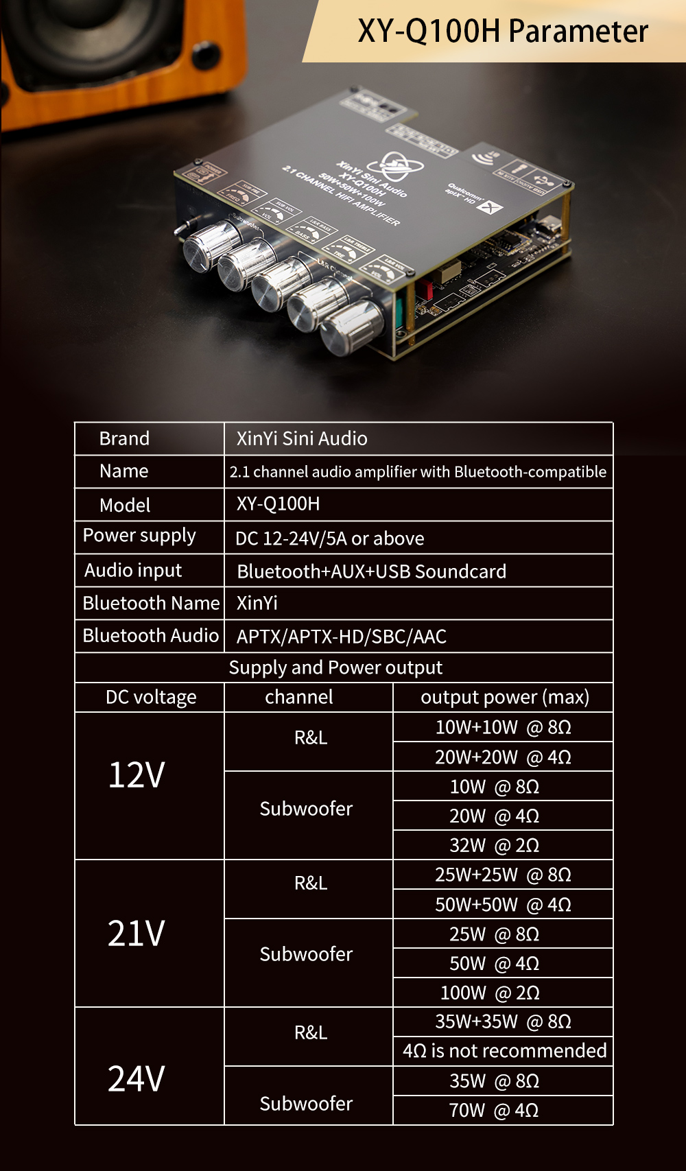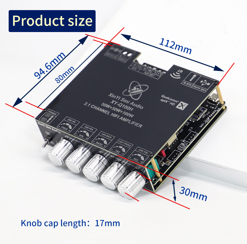 Sinilink XY-Q100H 2.1 Channel Bluetooth Audio Amplifier Module TPA3116 Subwoofer 50W2 100W APTXs AUX USB Soundcard Compact DIY Assembly