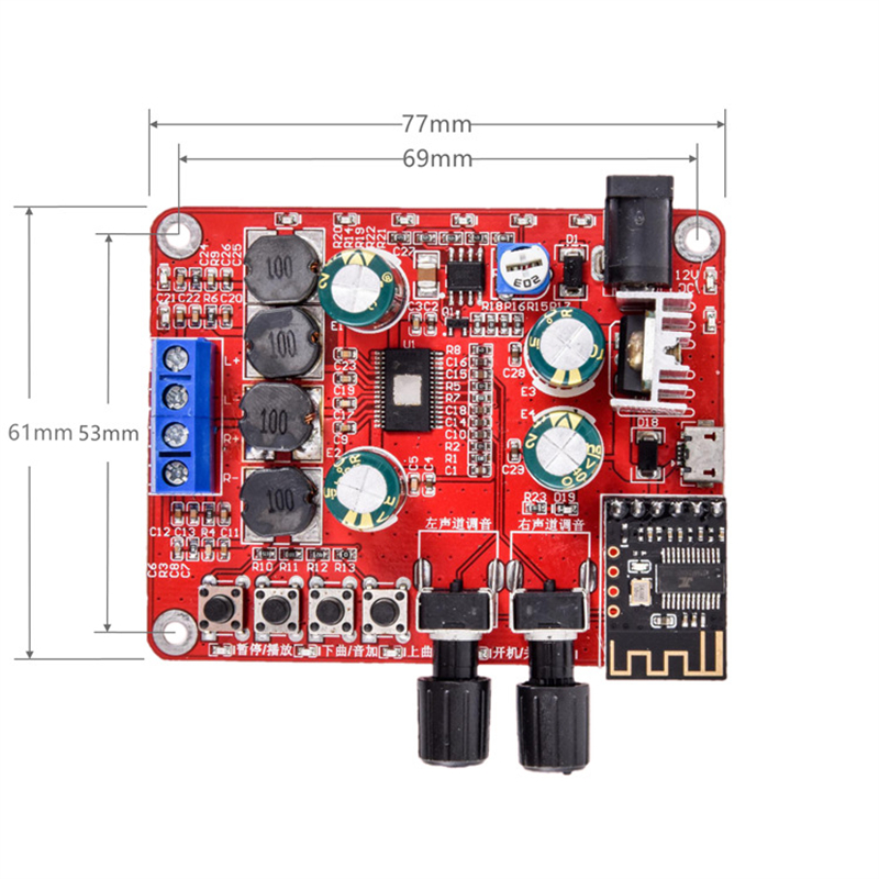 PCB Dimensions: 77x61x25mm (Drill Position: 69x53mm)