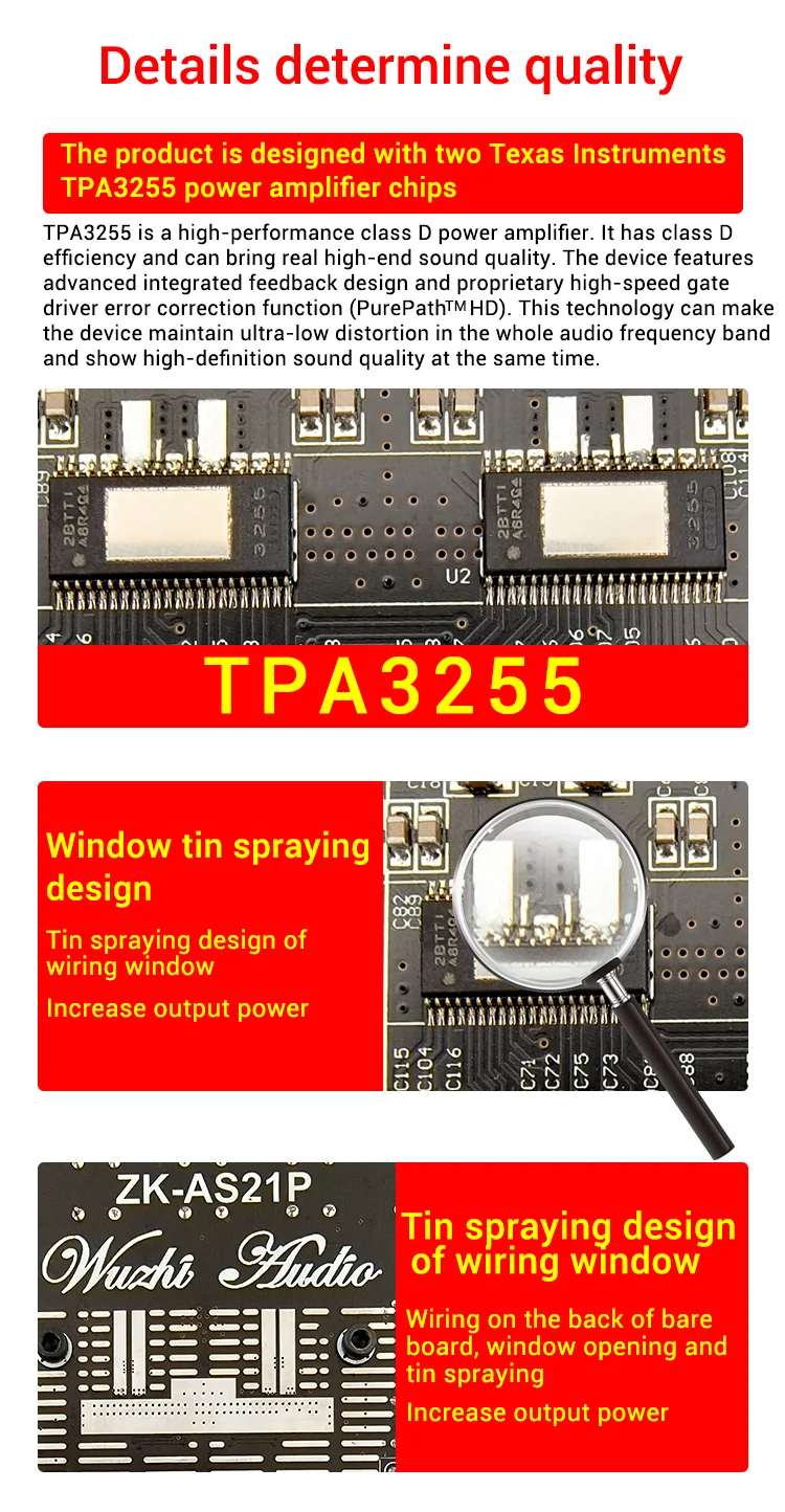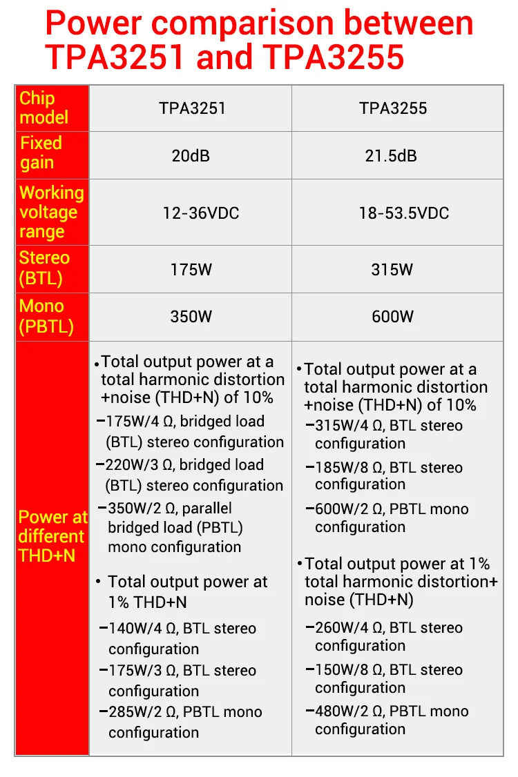 Amplifier Chip: Dual Texas Instruments TPA3255 chips