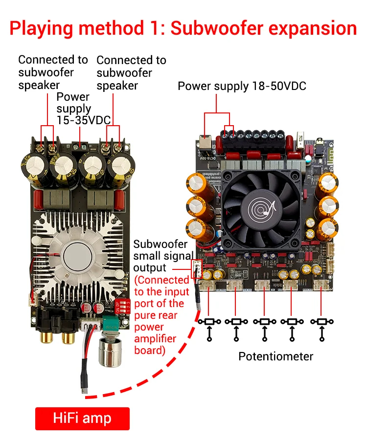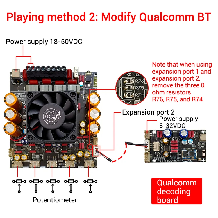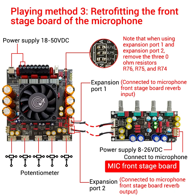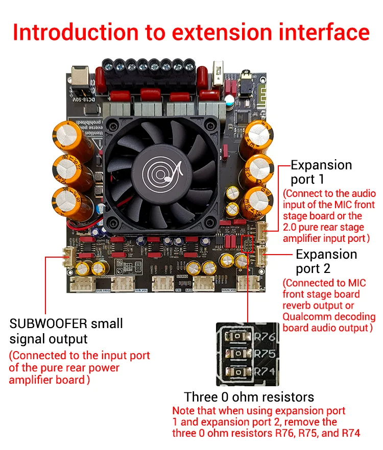 5. Customizable Functionality: Features external potentiometer ports for gain adjustment and additional expansion interfaces to connect microphones or decoding boards.