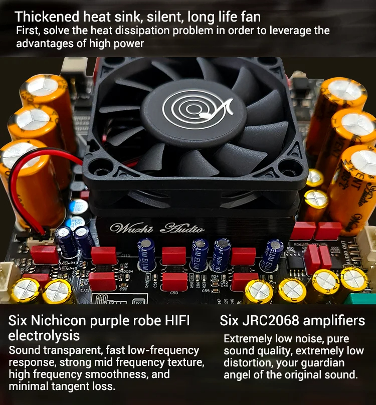 3. Advanced Components: Equipped with six Nichicon purple robe HIFI electrolytic capacitors, designed for excellent sound quality and low distortion.