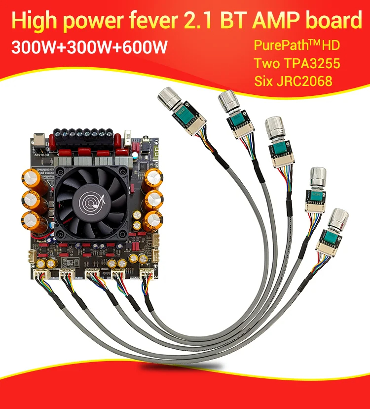 ZK-AS21P TPA3255x2 Digital Power Amplifier Board 300WX2+600W 2.1 Channel Bluetooth With Subwoofer Module