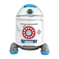 Fingerprint Password Rocket Piggy Bank Toy, White, Blue, Red