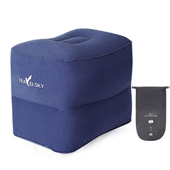 TRAELSKY Flocking PVC Inflatable Footstool Airplane Train Car Footrest Office Nap Footrest With Inflatable Bag, 2 Layer, 3 Layer, Adjustable Height Dual Valve