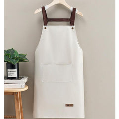 Waterproof Oil-Resistant Apron with Button Decoration Adjustable H-Back Straps